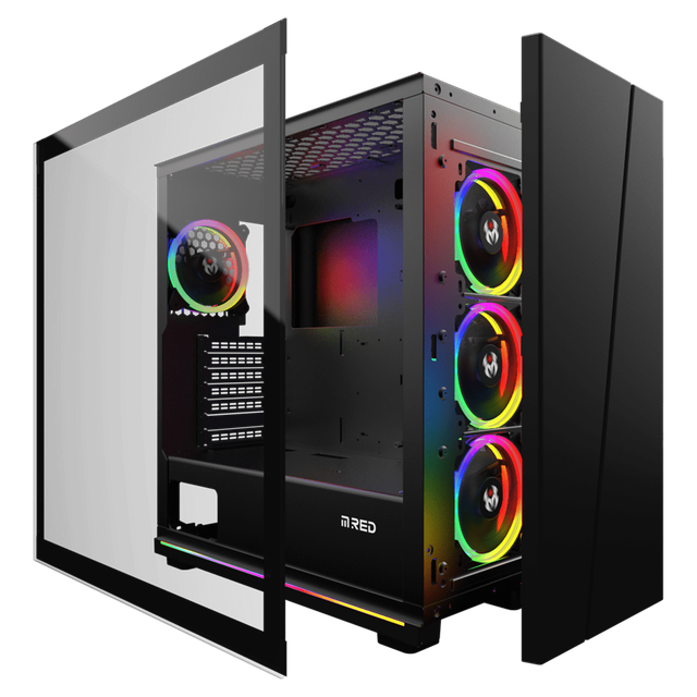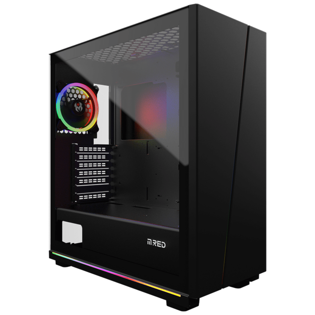 Le Black Destroyer Strip-G est un mid-tower élégant avec panneaux avant interchangeables et une barre ARGB pilotable (télécommande IR, contrôle carte mère, mode audio-réactif). Il est livré avec 4 ventilateurs ARGB 120 mm (3 avant + 1 arrière) et accepte jusqu’à 6×120 mm au total, ainsi que des radiateurs 240 mm (façade/arrière) et jusqu’à 360 mm au sommet. Châssis acier + verre trempé (vitre latérale), filtre magnétique sur le haut. Compatibilités : E-ATX/ATX/mATX/mini-ITX, ventirad 160 mm, GPU 400 mm, PSU 210 mm. Stockage : 3× 2,5" + 2× 3,5" sur rack HDD amovible. I/O supérieurs : 2× USB 3.0, audio + micro. Un boîtier polyvalent, pensé pour un airflow efficace et une mise en lumière ARGB simple à synchroniser.